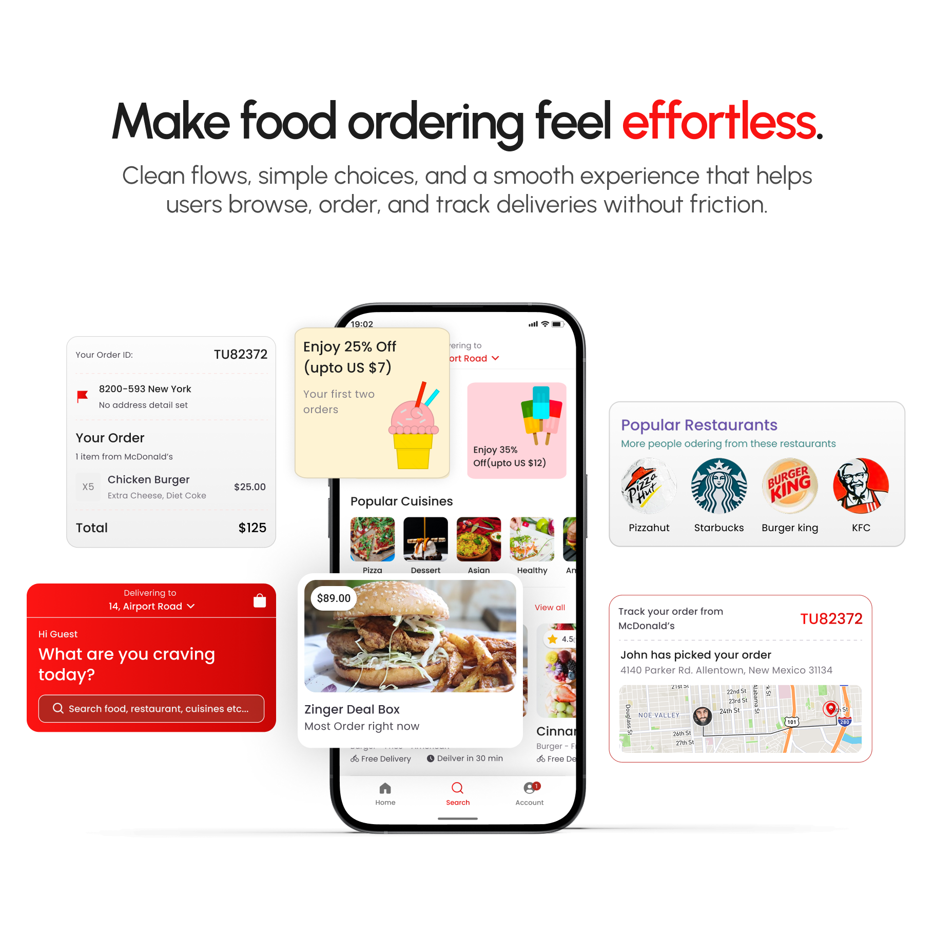 - Branded Restaurant Profiles: Logos, ratings, and delivery info