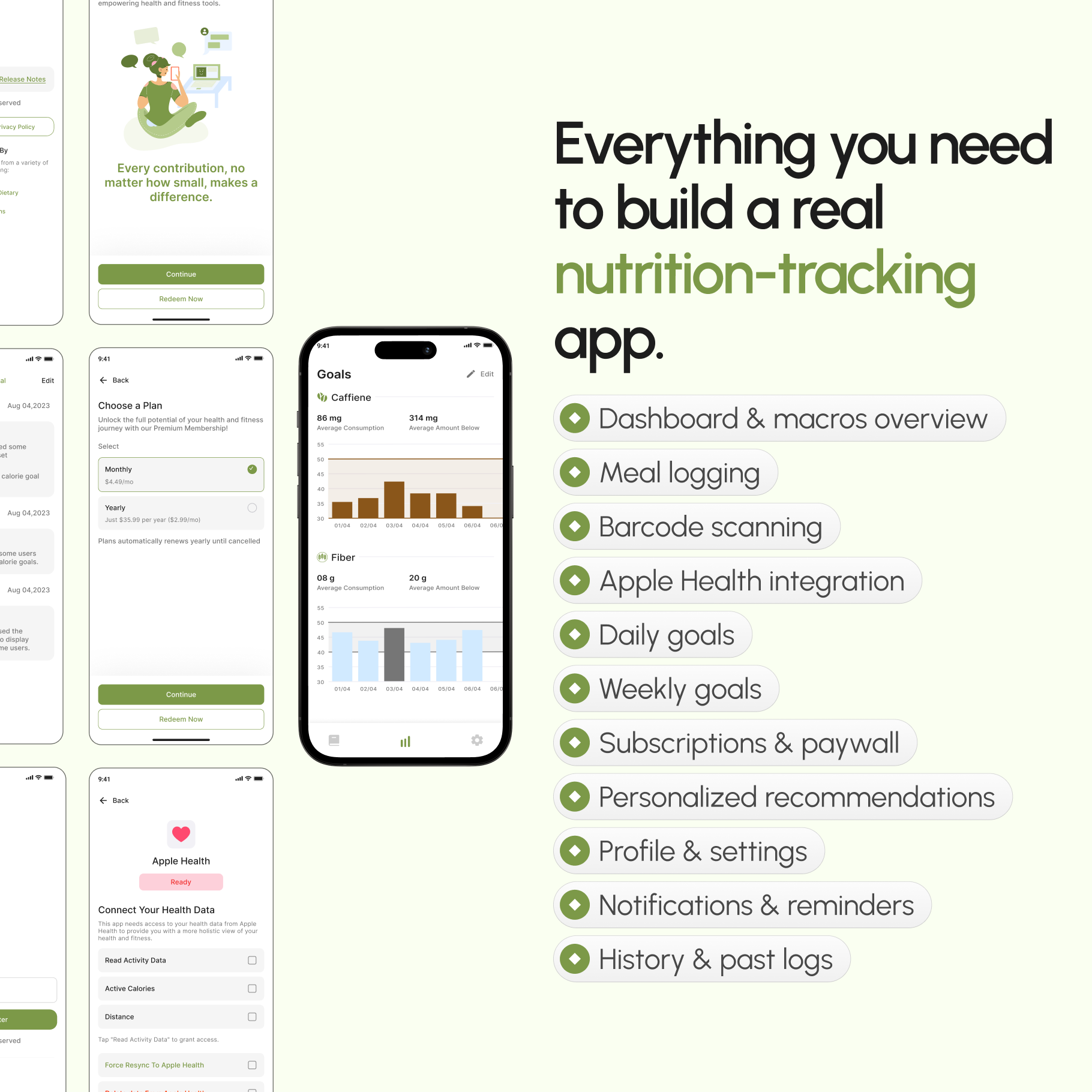 Track Food, Goals, Health & Progress β 67 Screens Included